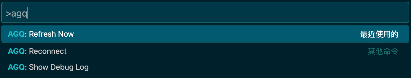開啟指令面板 (`Cmd/Ctrl + Shift + P`),輸入 `AGQ` 選擇指令。