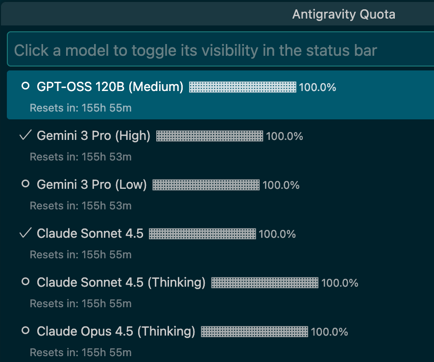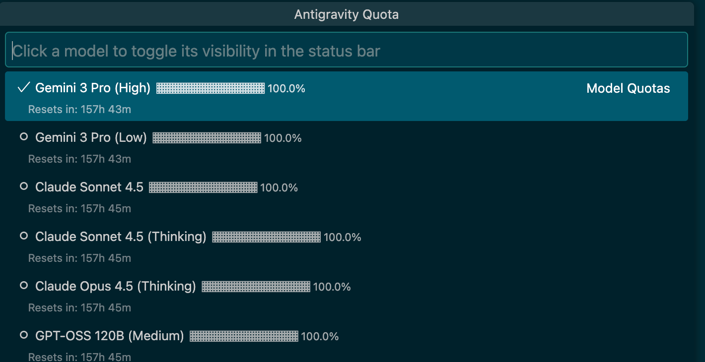 在使用 Antigravity 進行開發時,AI 模型的額度管理是個實際問題。當額度用盡時,開發流程會被迫中斷,但目前沒有簡單的方式即時掌握各模型的使用狀況。