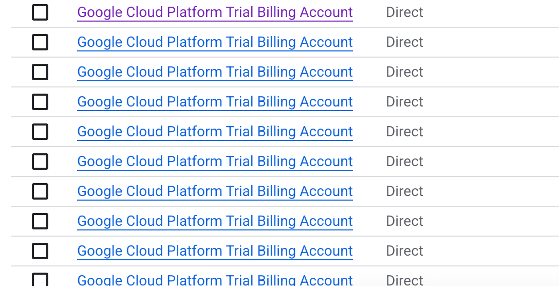 現況: 每次兌換之後,都會產生一組 Google Cloud Platform Trial Billing Account (或是對應的中文翻譯名稱)