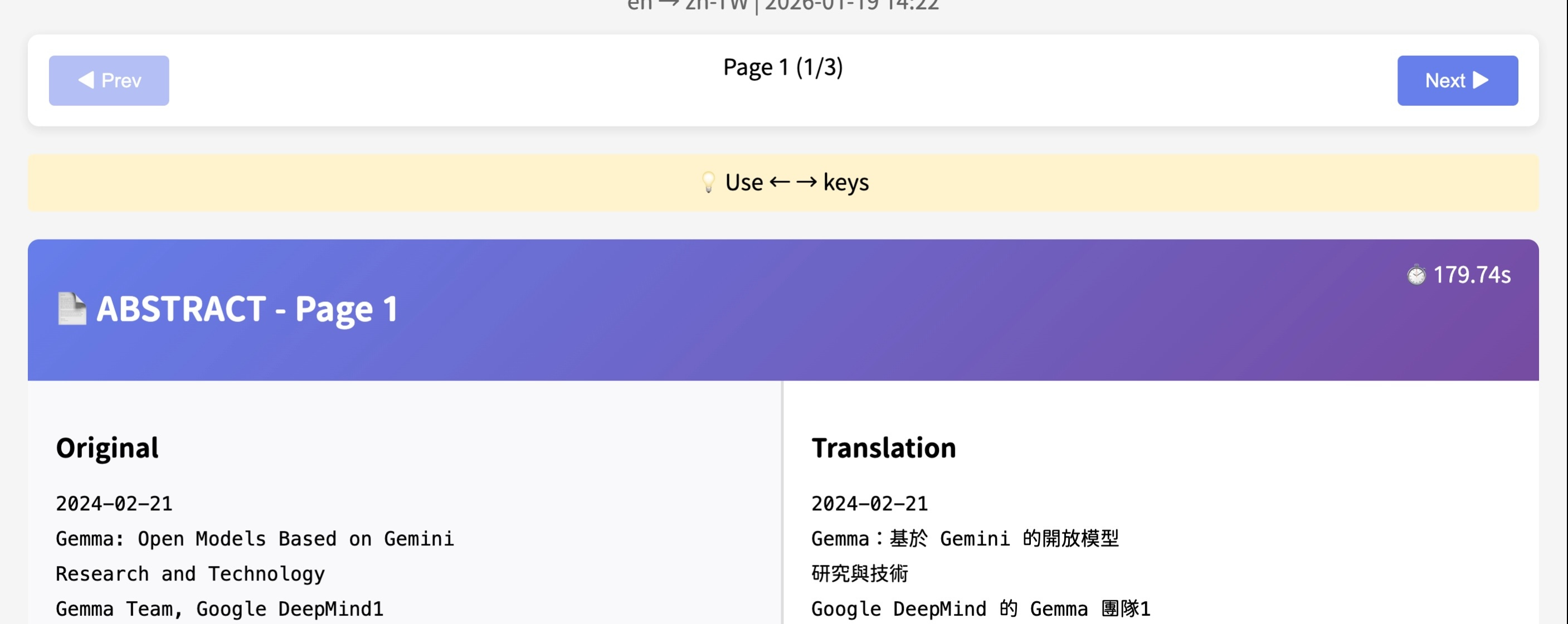 - Header:arXiv ID、語言對、產生日期